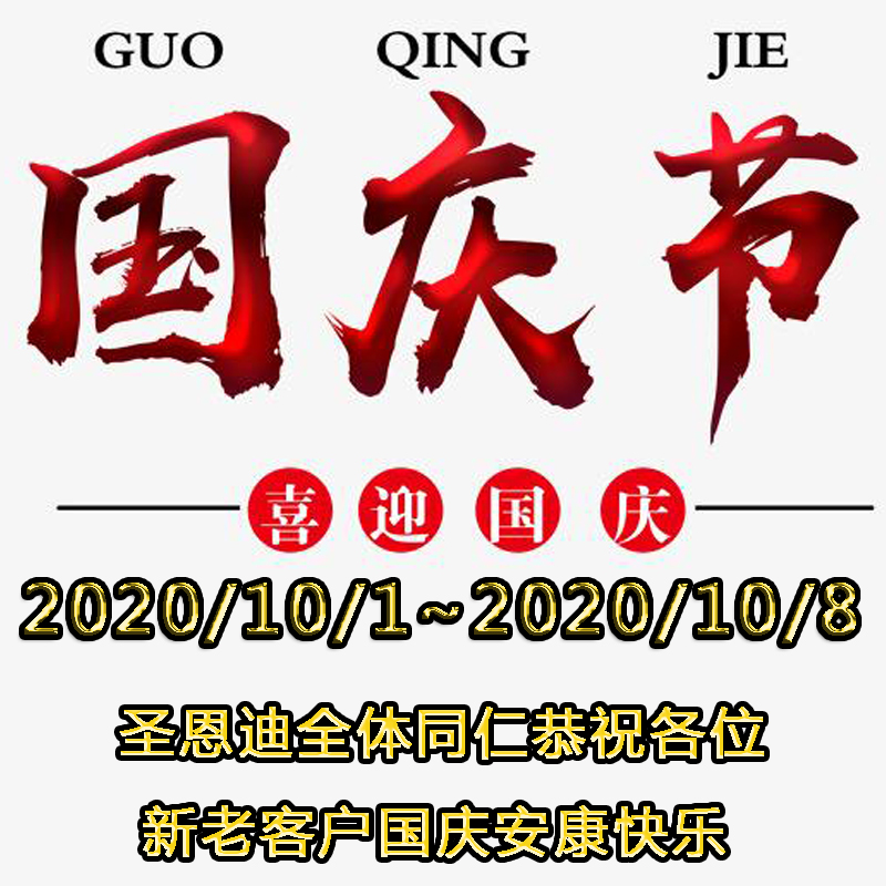 一年一度的中秋節、國慶節馬上到來了、所幸的是中秋和國慶節一起了、所以假期不會有兩個、2020年10月1日至8日共八天假期、這幾天要圣恩迪插頭、圣恩迪連接器、單極連接器 雙極連接器 DIN連接器 航模連接器 香蕉插頭 OEM線束的抓緊哦、假期期間物流會停運、就是想發貨也發不了、所以抓緊時間哈、各位親